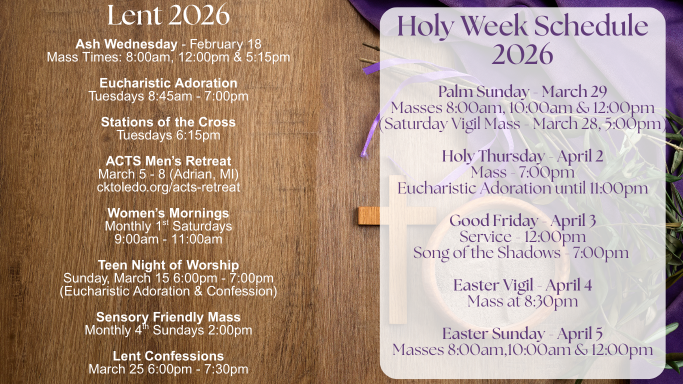 Sat 5:00pm Sun 8:00am, 10:00am, 12:00pm