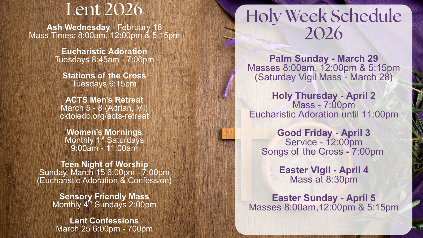We are the largest Catholic parish in the city of Toledo dedicated to fostering a sense of belonging for everyone by joyfully proclaiming the life changing message of Christ Jesus the Lord.